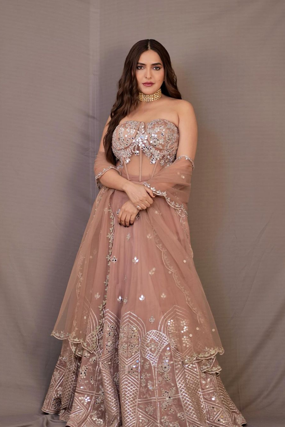 Sukhmani Gambhir in GOLD FISH CUT LEHENGA SET