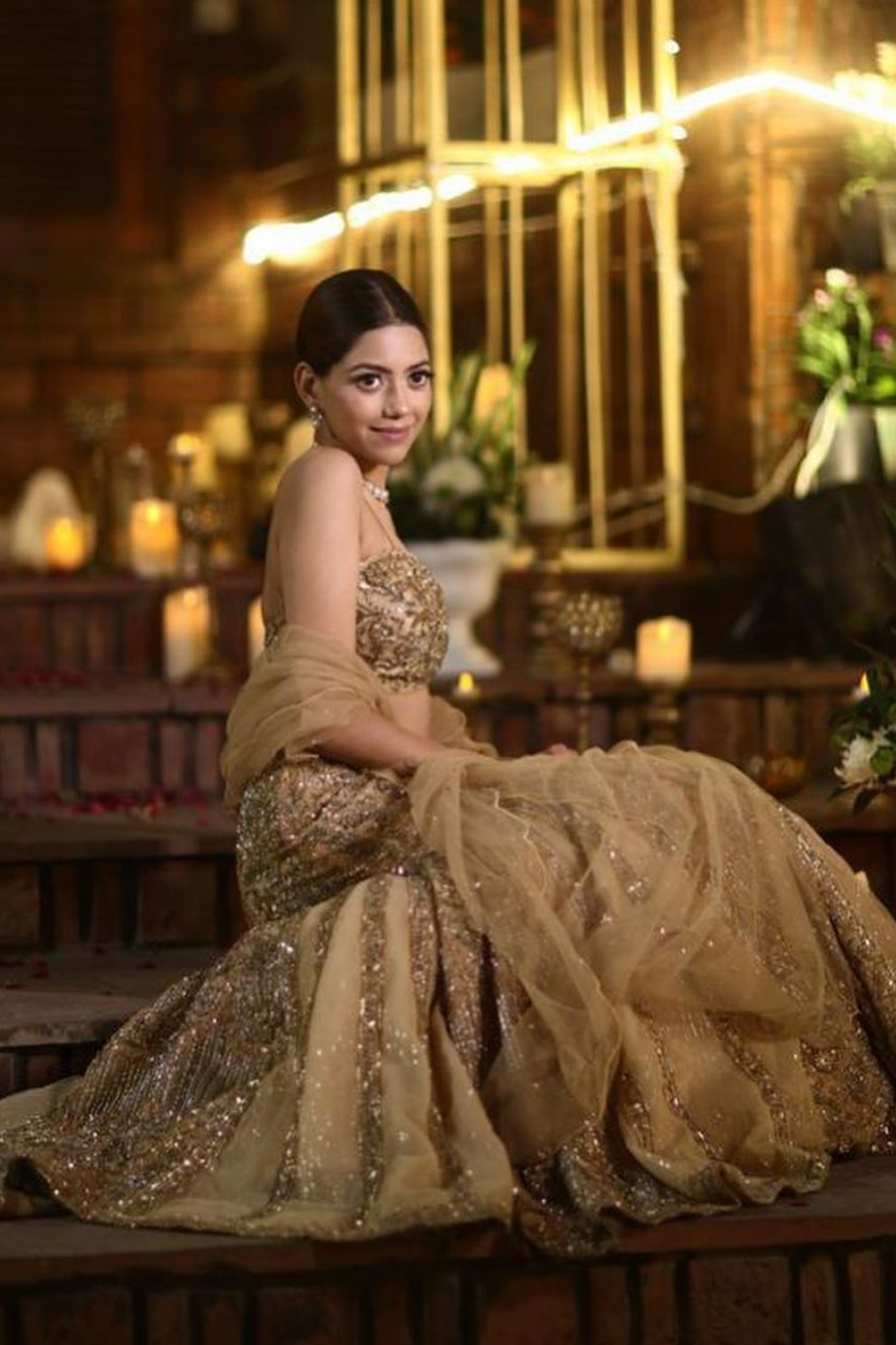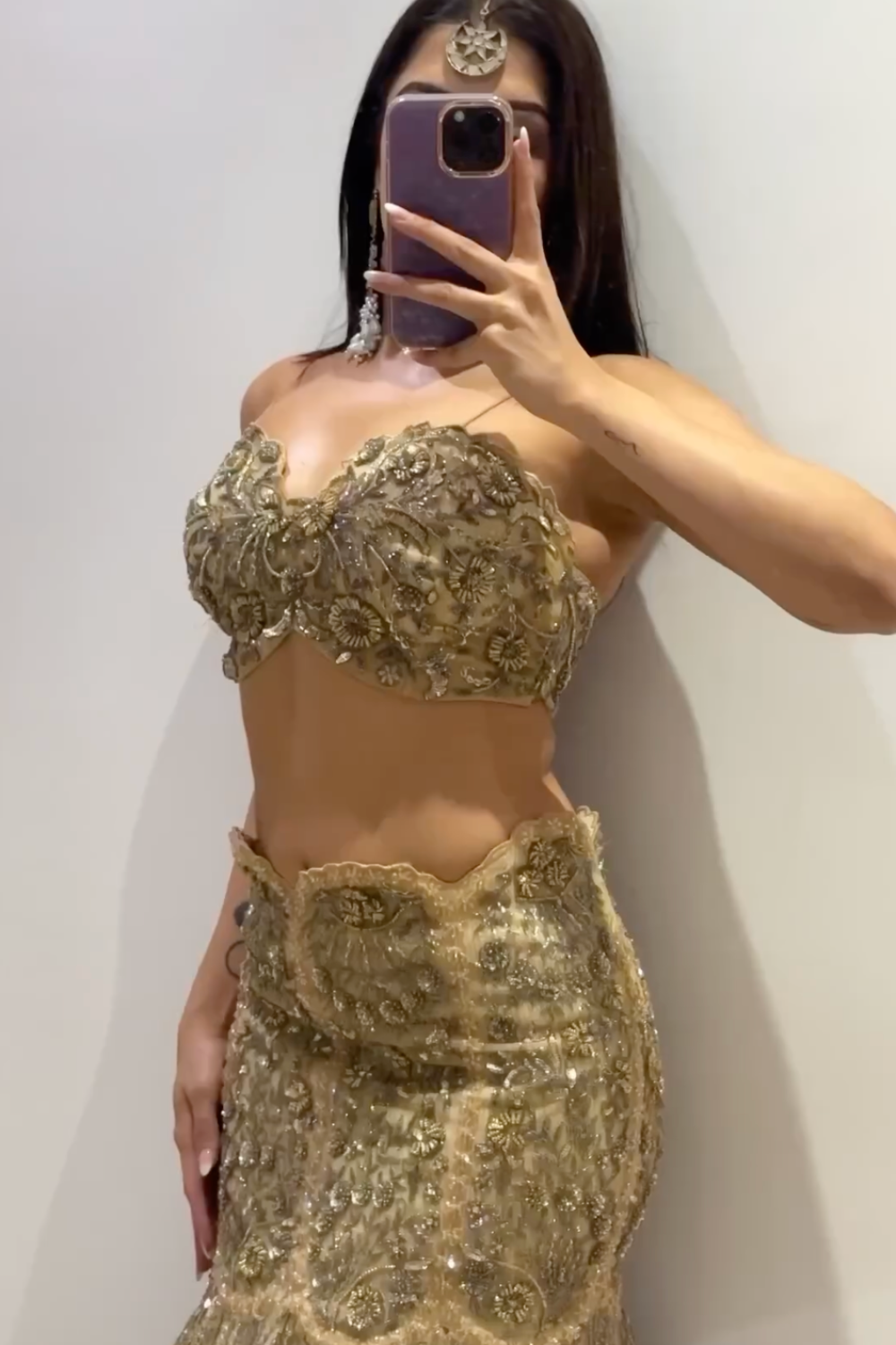 vanshika mehta in GOLD FISH CUT LEHENGA SET