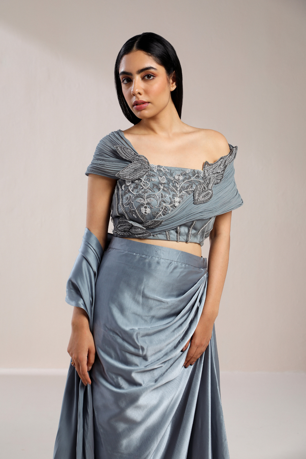 ILLUSION SKIRT WITH BLOUSE AND STRUCTURE DUPATTA SET