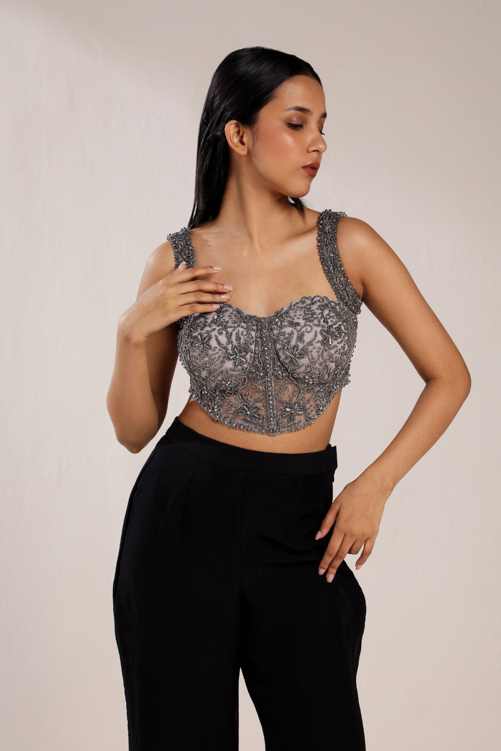 GREY CORSET BLOUSE WITH FLARE PANTS