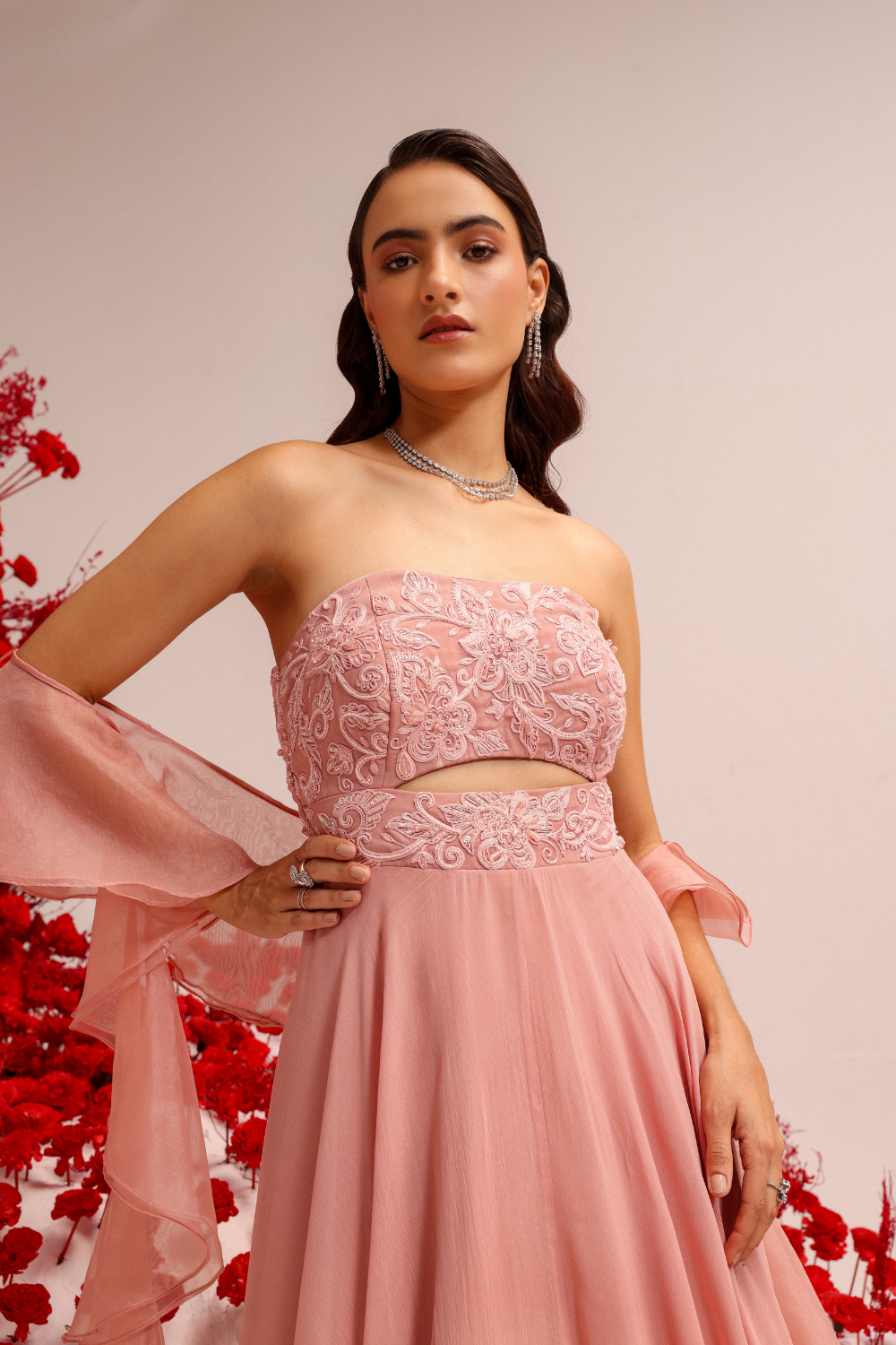 PEACH DORI WORK EMBROIDERED ANARKALI