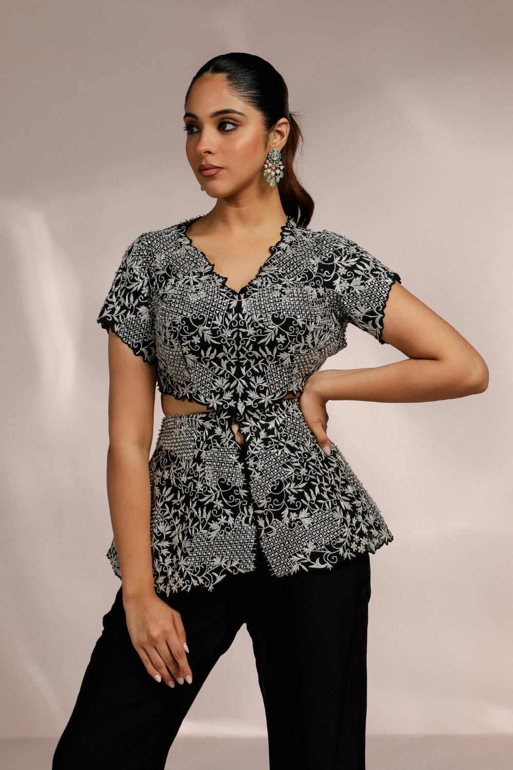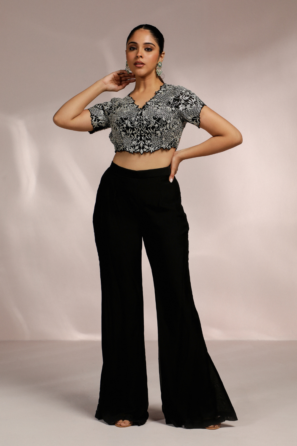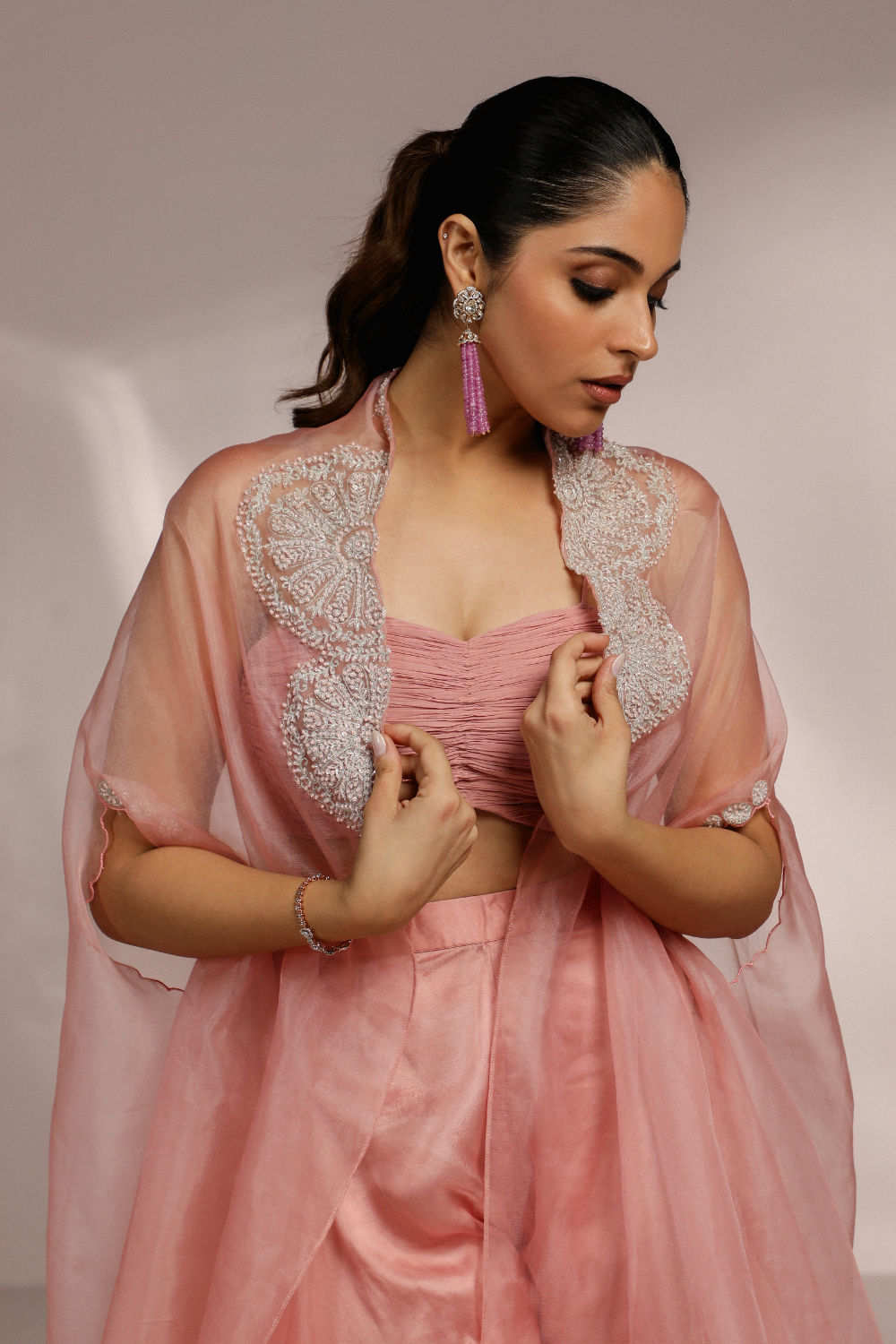 RUCHING BLOUSE WITH AREB PANT AND CAPE