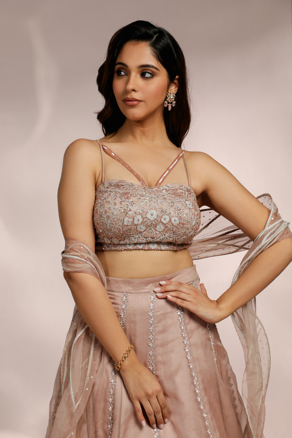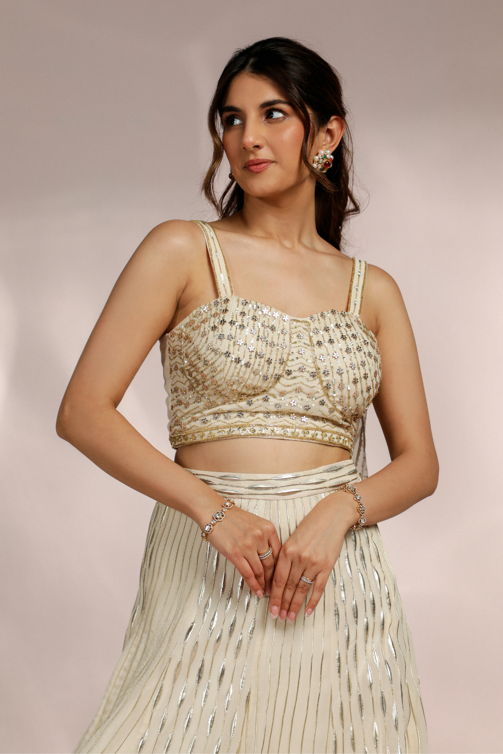 CHAMPAGNE SKIRT WITH FLARED SLEEVES BLOUSE AND DUPATTA SET