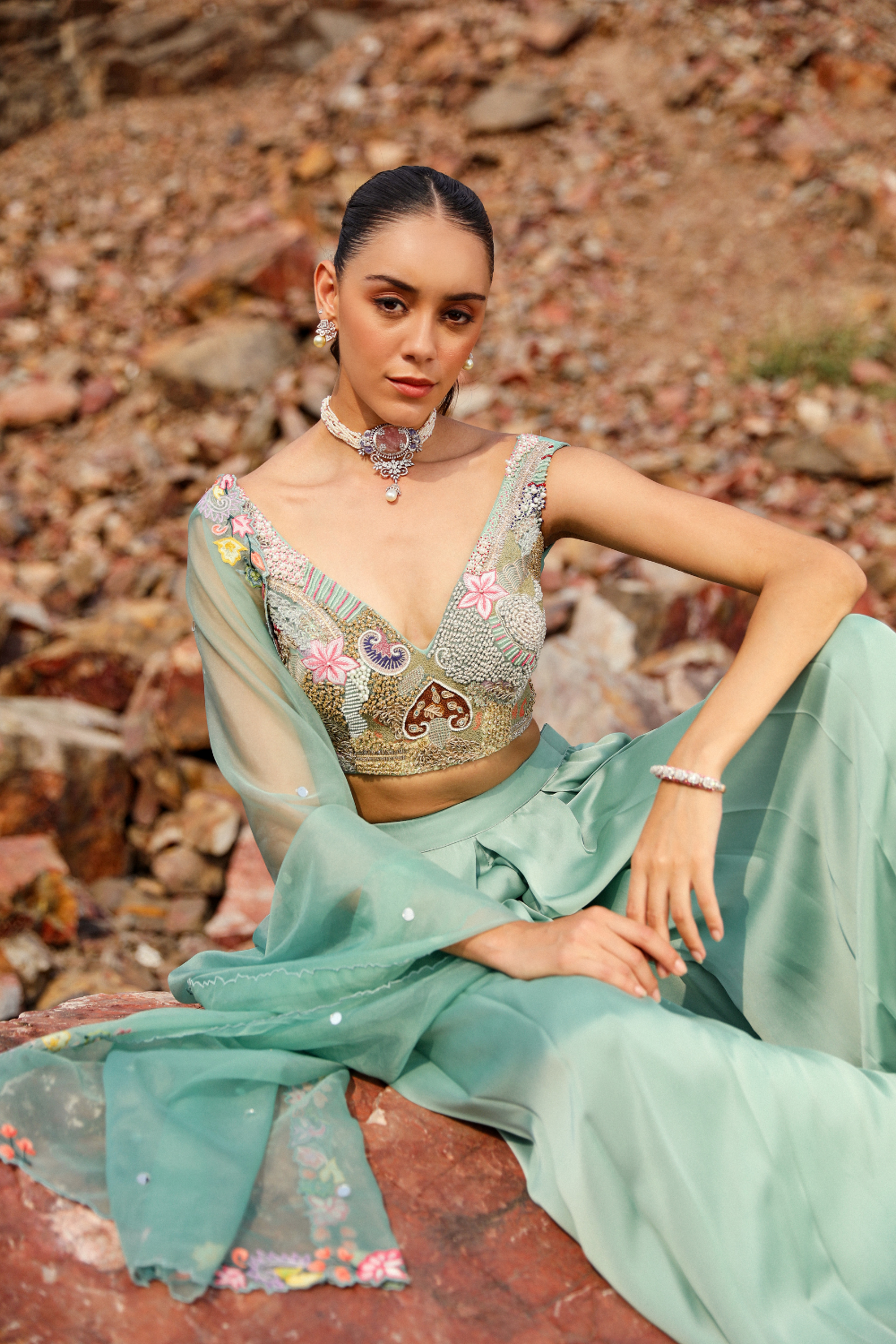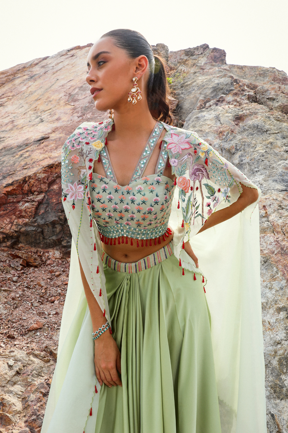 FLAMINGO GREEN LEHENGA SET