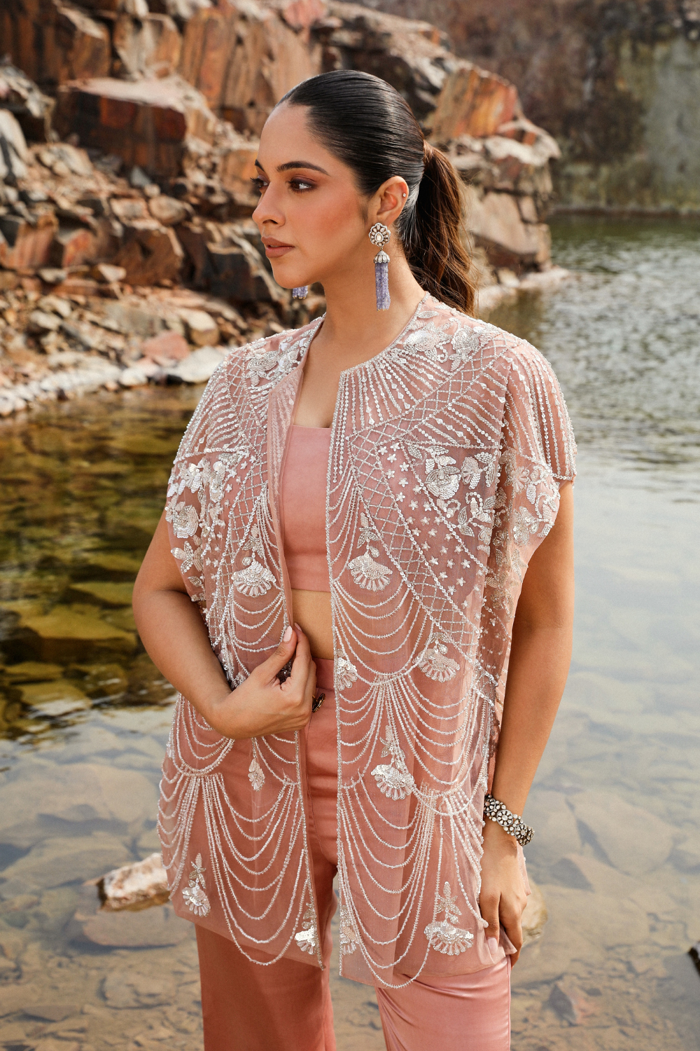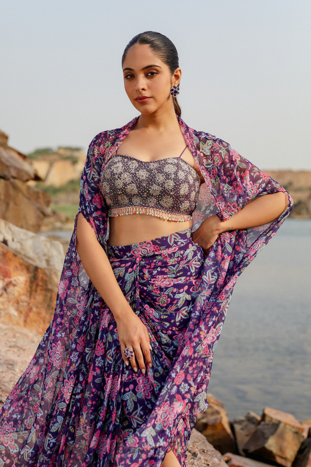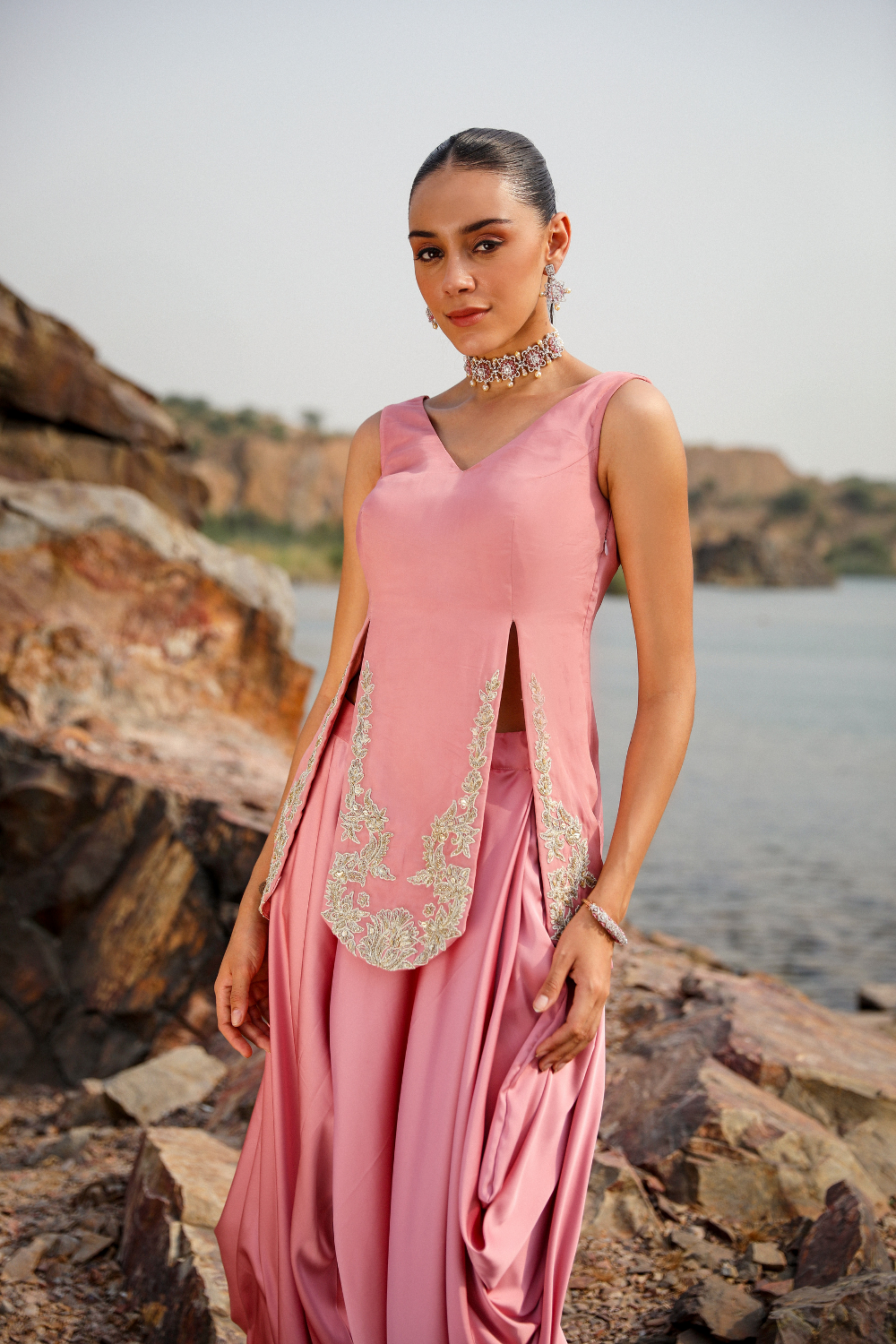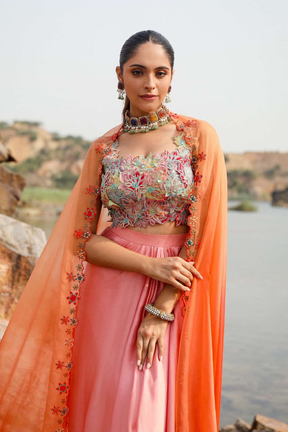 FLAMINGO DHOTI CAPE SET