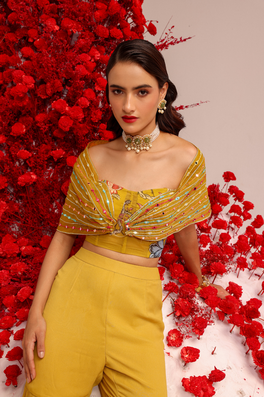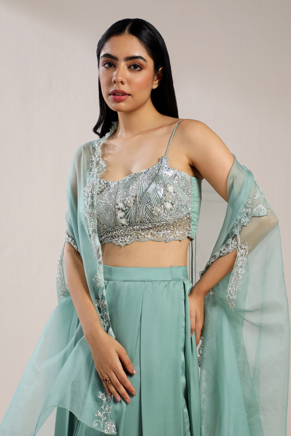 MINT GREEN PLEATED PLAZZO AND CAPE