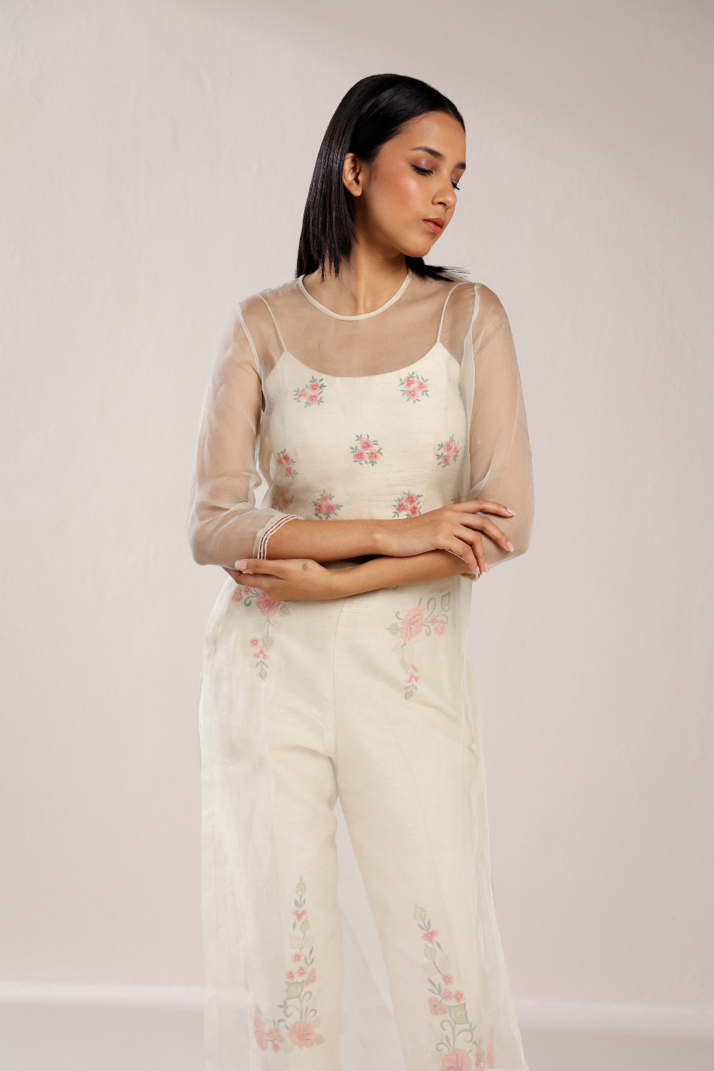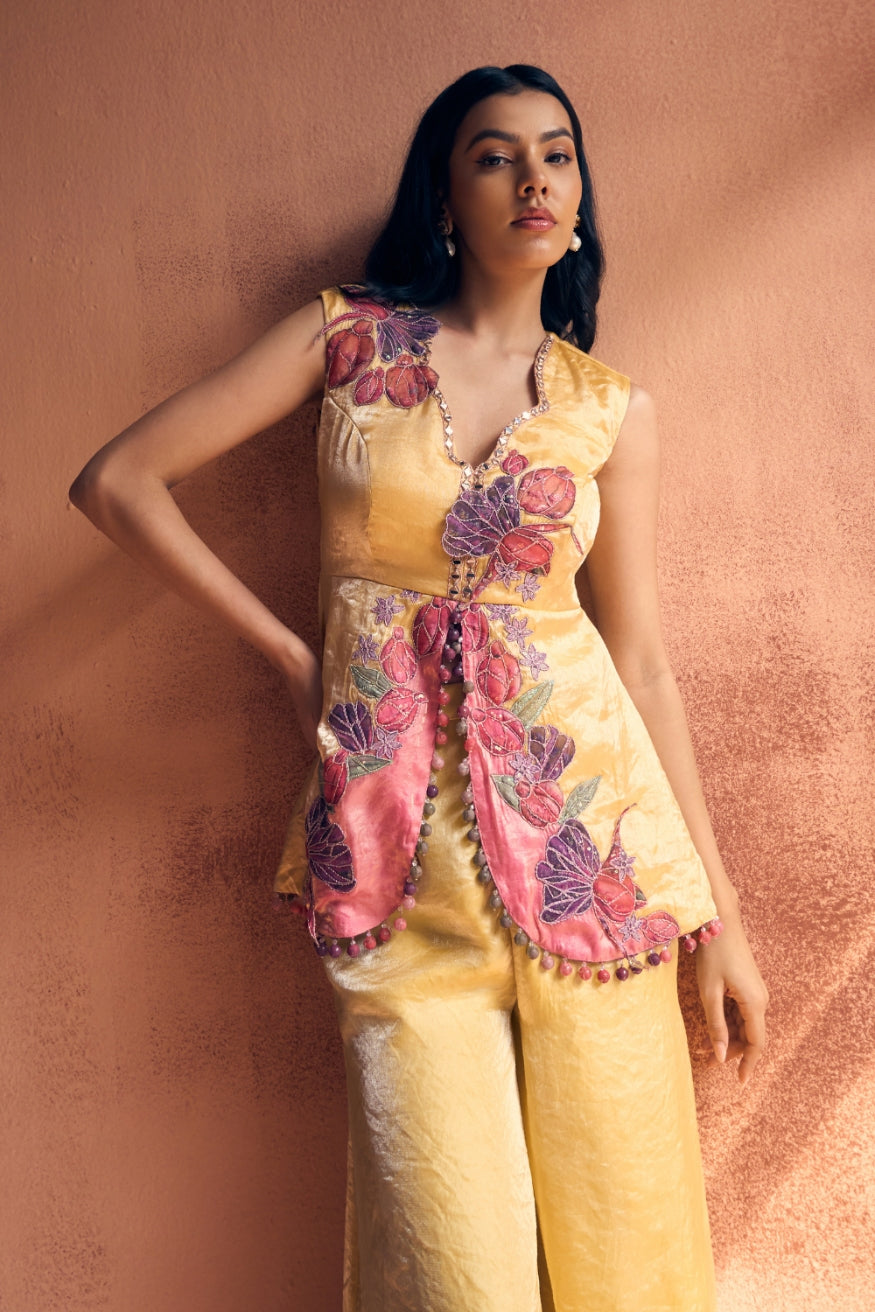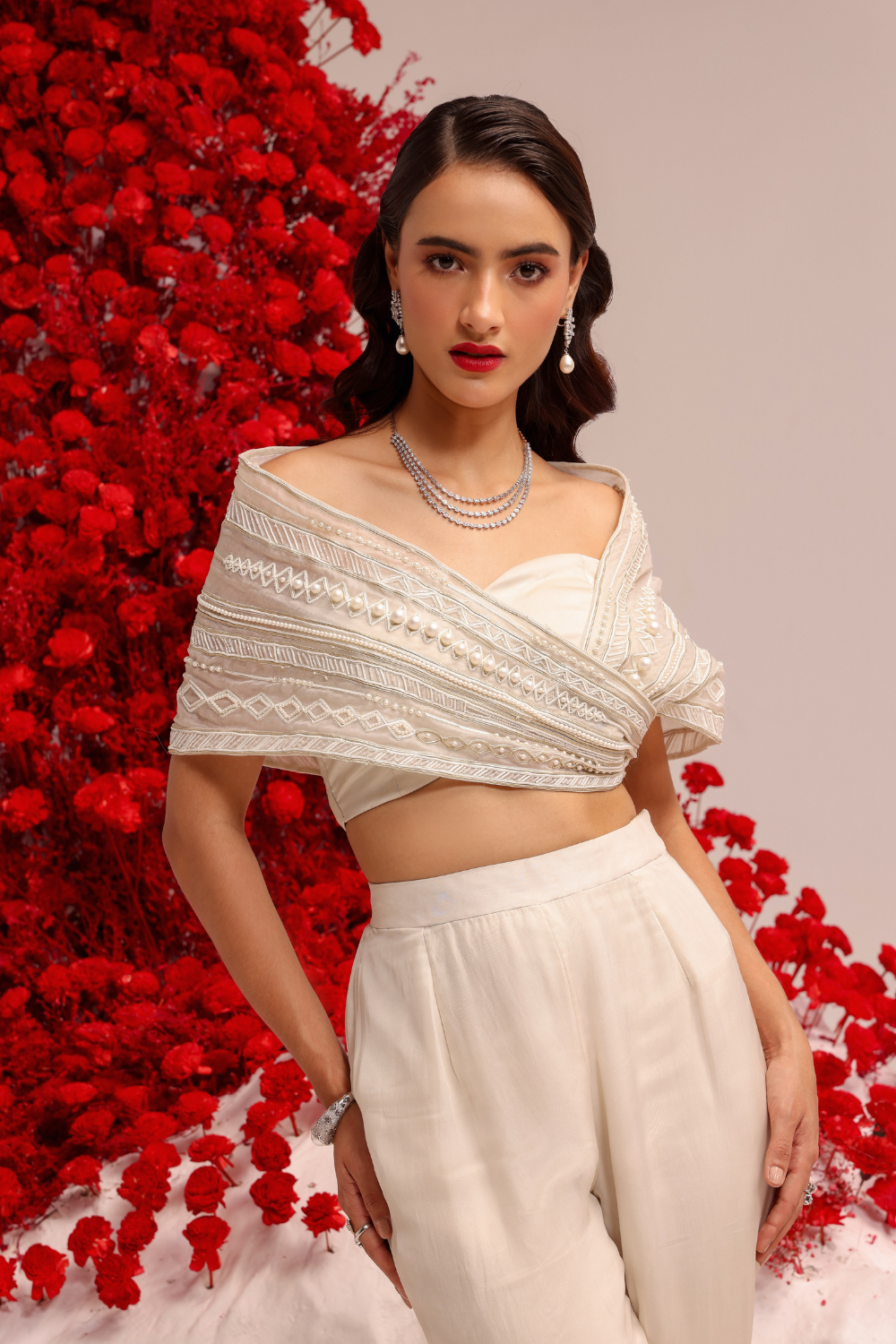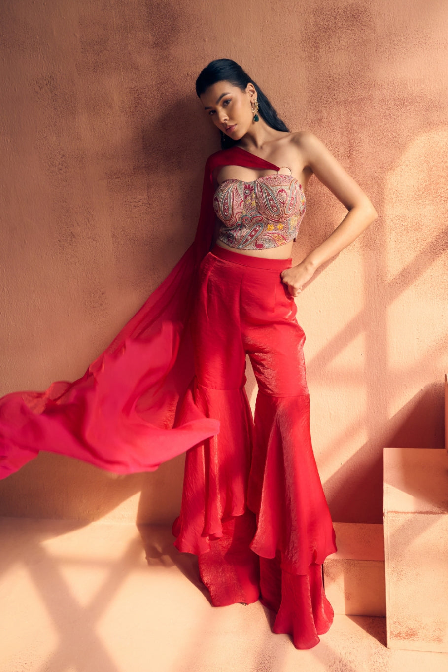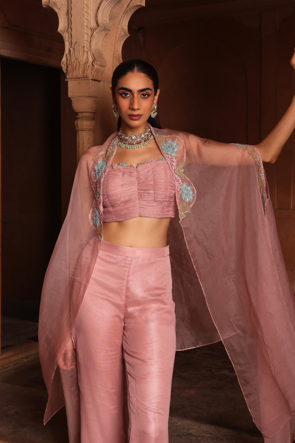 RUCHING BLOUSE WITH SIDE SLIGHT PANT AND CAPE SET
