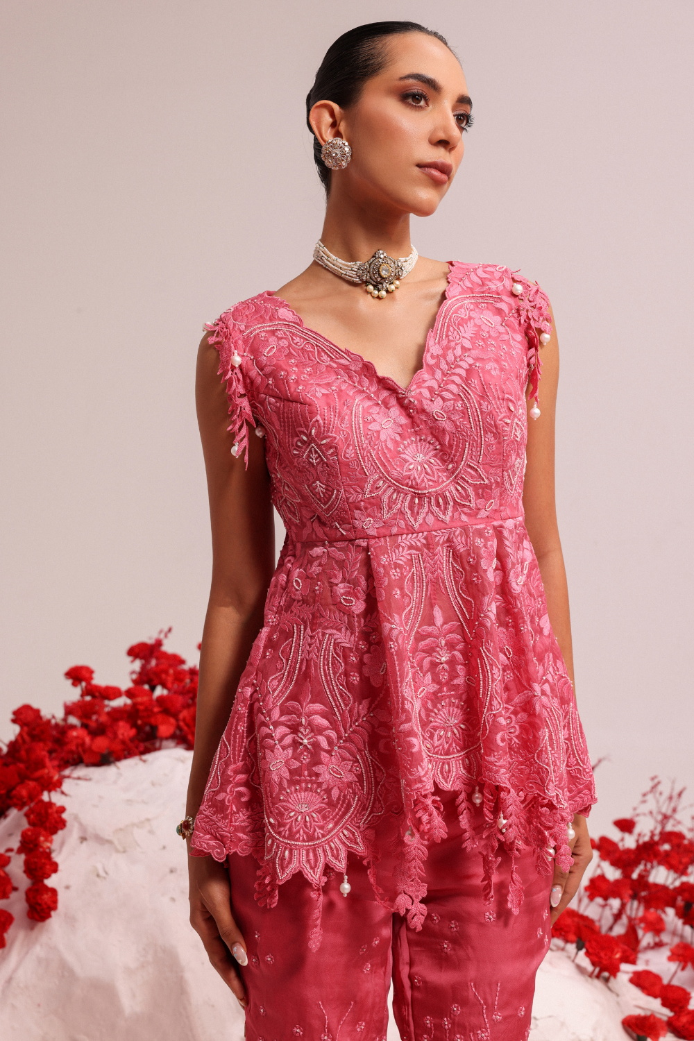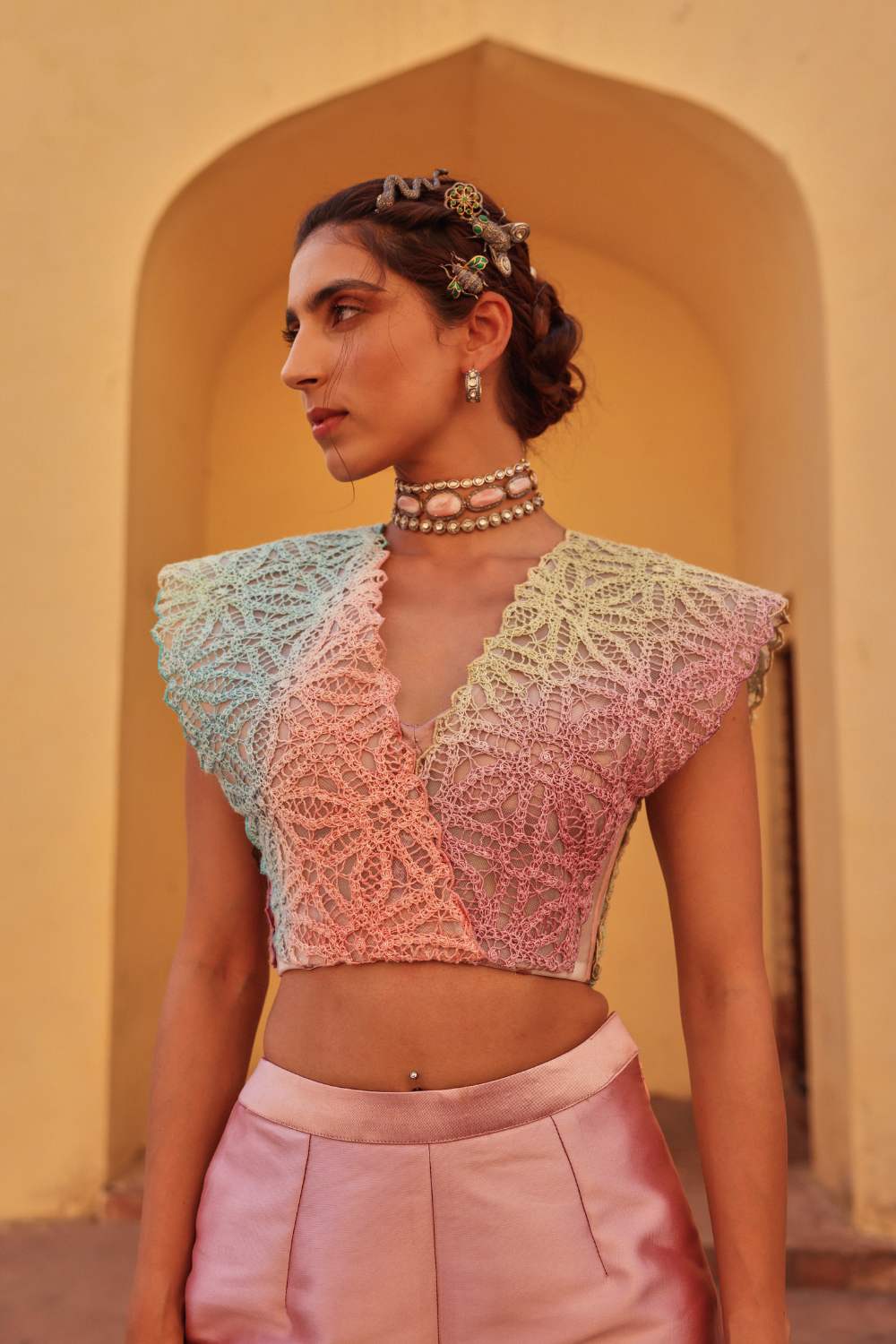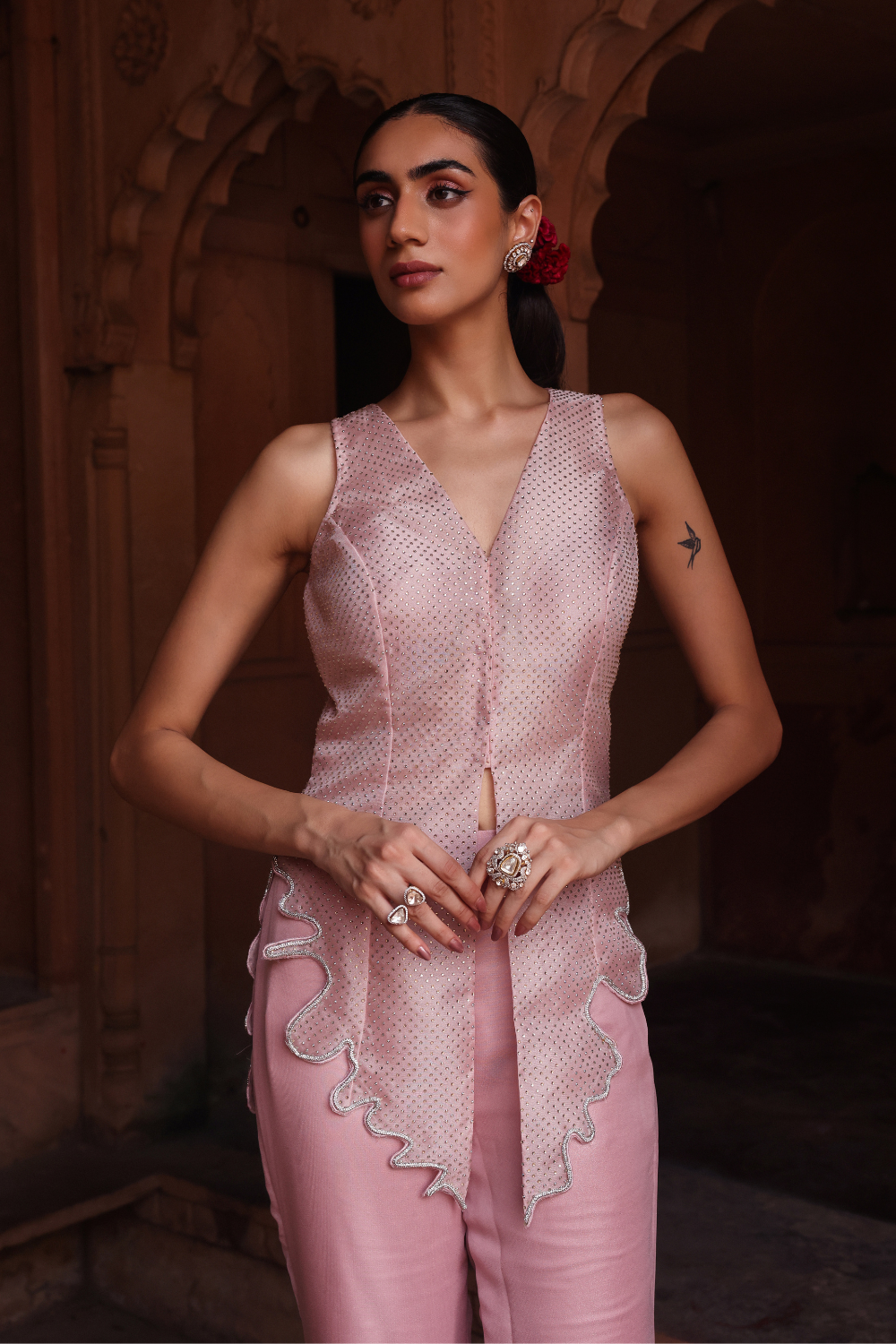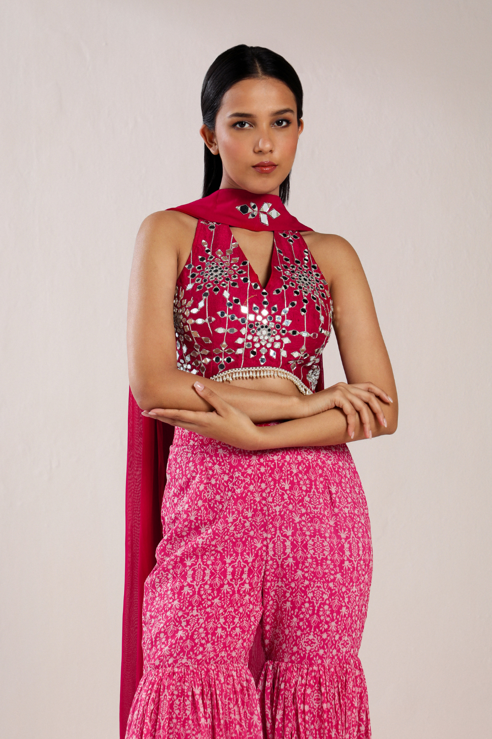 PINK HALTERNECK CROP TOP WITH SHARARA