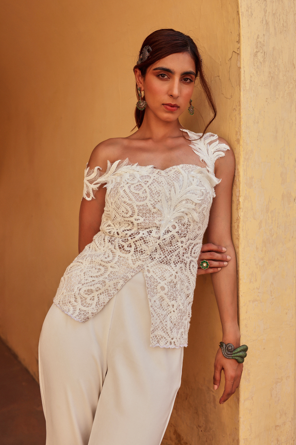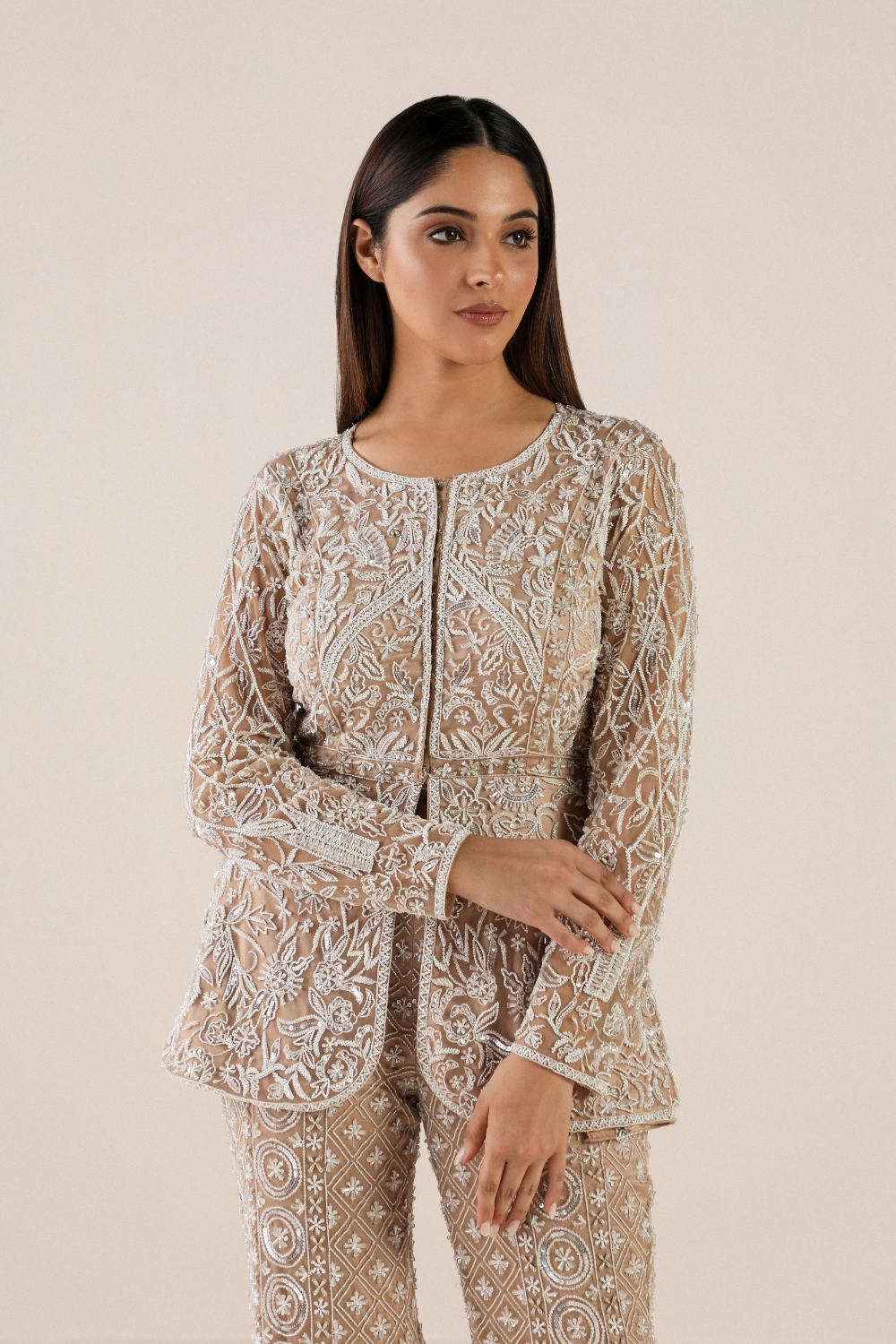 CHAMPAGNE CRYSTAL PEPLUM CO-ORD SET