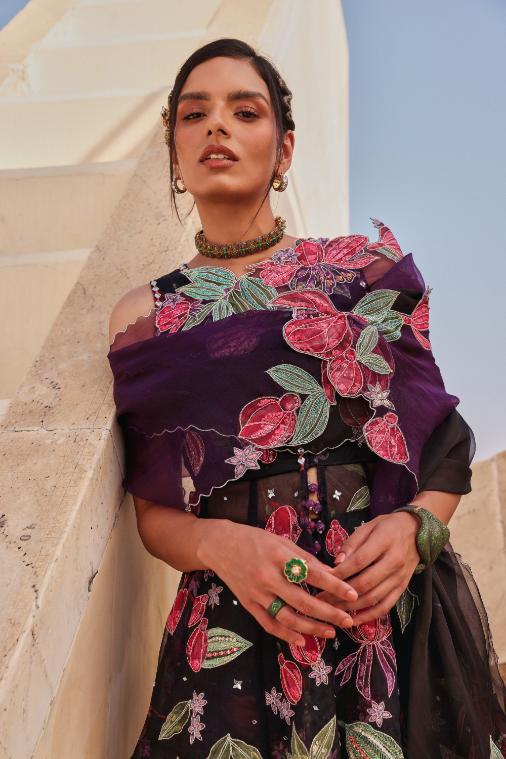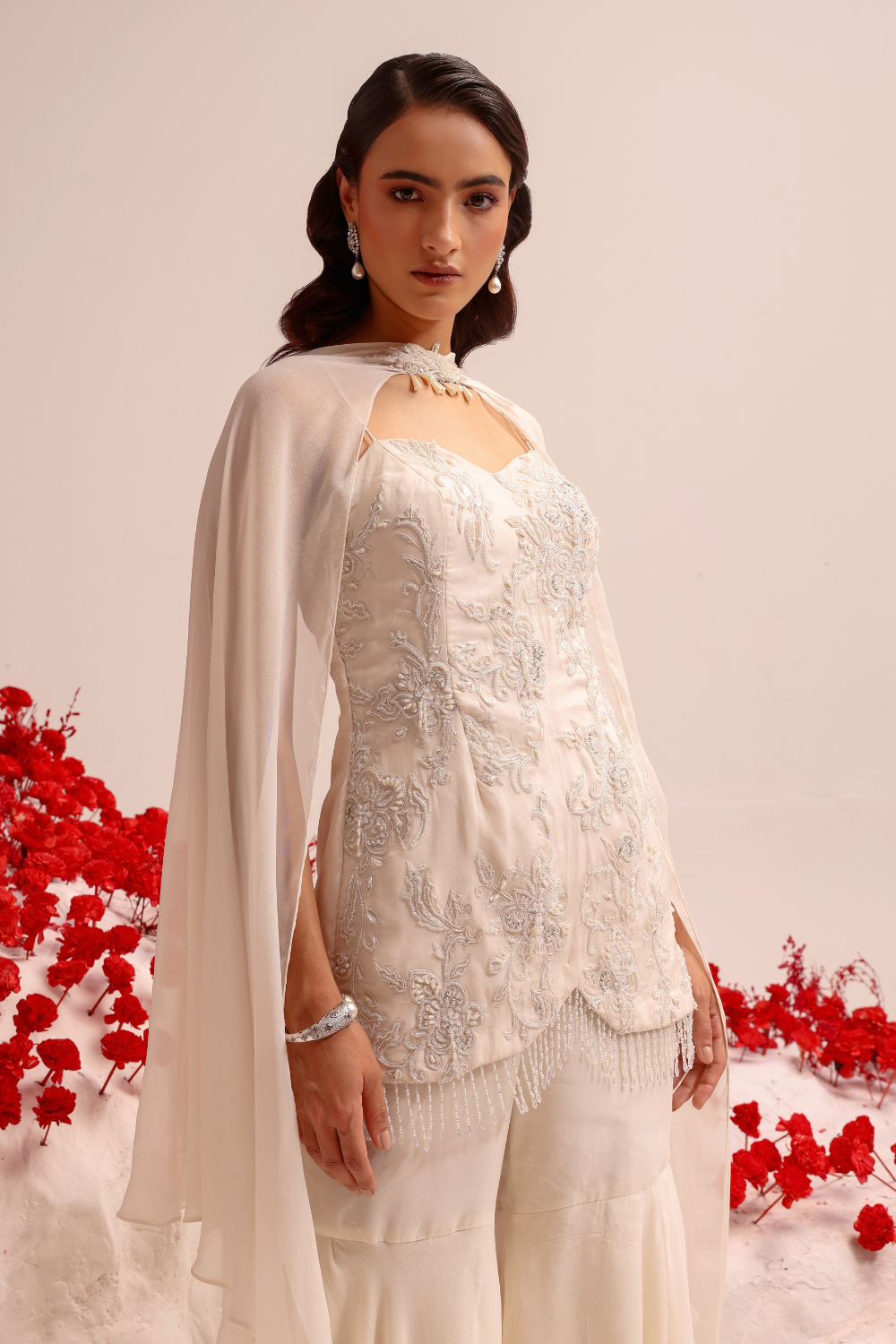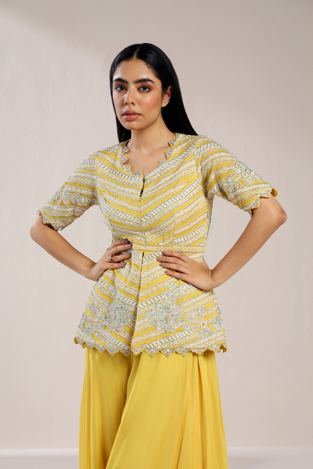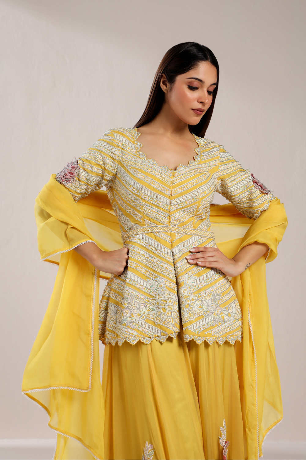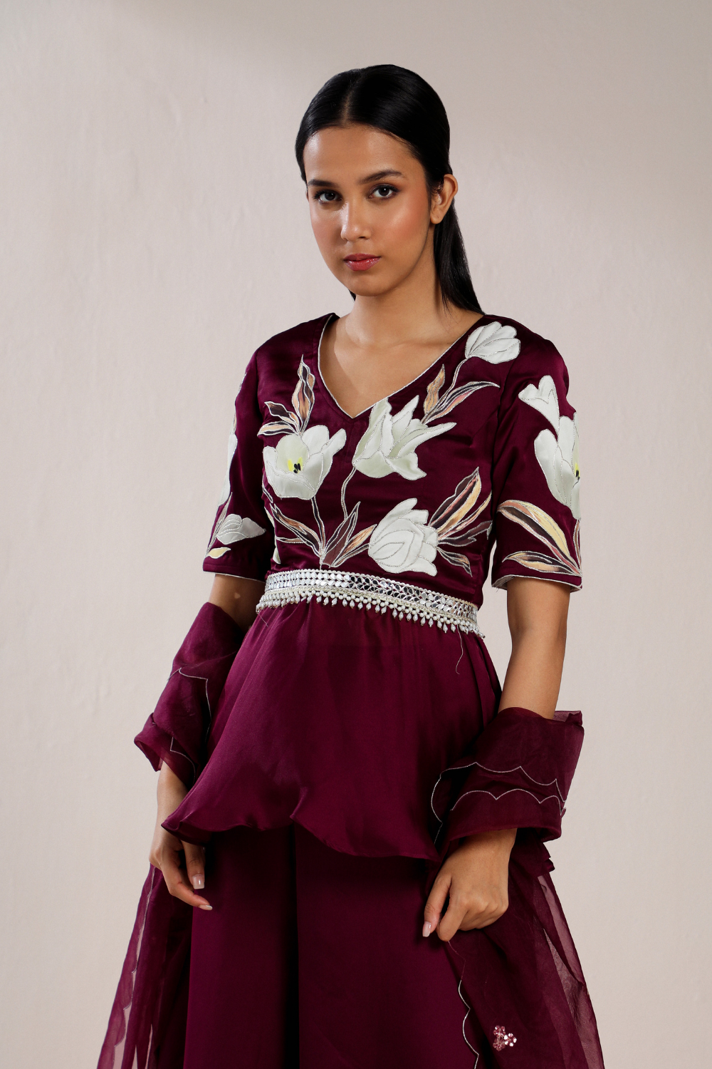 APPLIQUE FLORAL PEPLUM TOP AND SHARARA