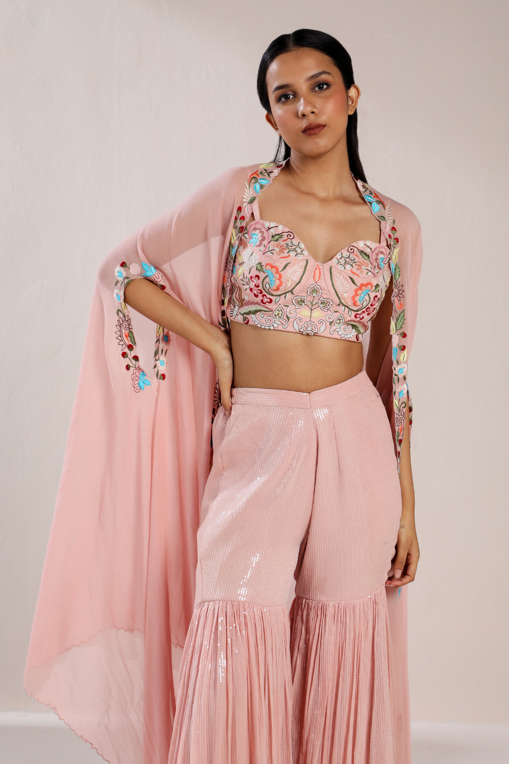 PINK HALTERNECK CROP TOP WITH SHARARA