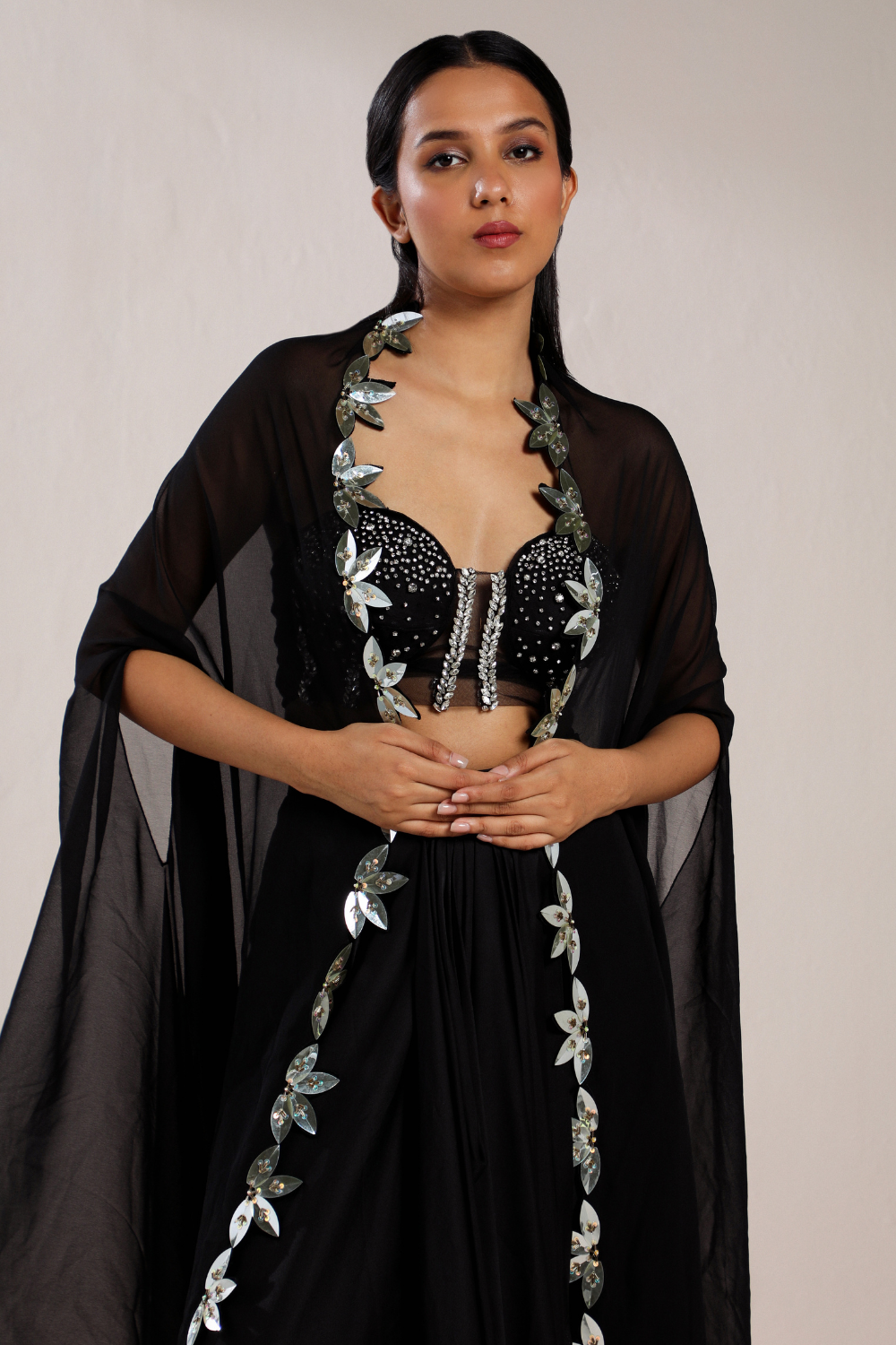 Black Embroidered Cape Set