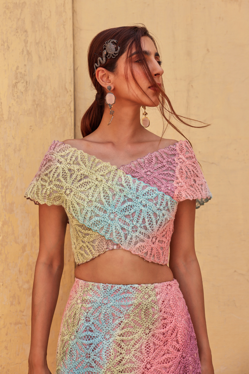 Chakra blouse drape skirt set