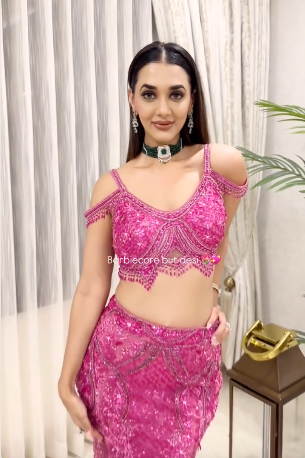 Deeksha Mishra in Candy Pink Fishcut Lehenga