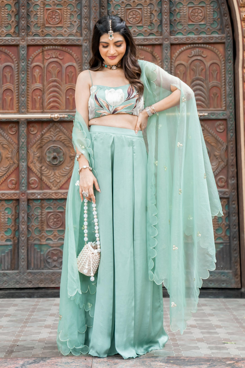 Khushnaz Turner in APPLIQUE FLORAL TOP AND PLEATED PLAZZO